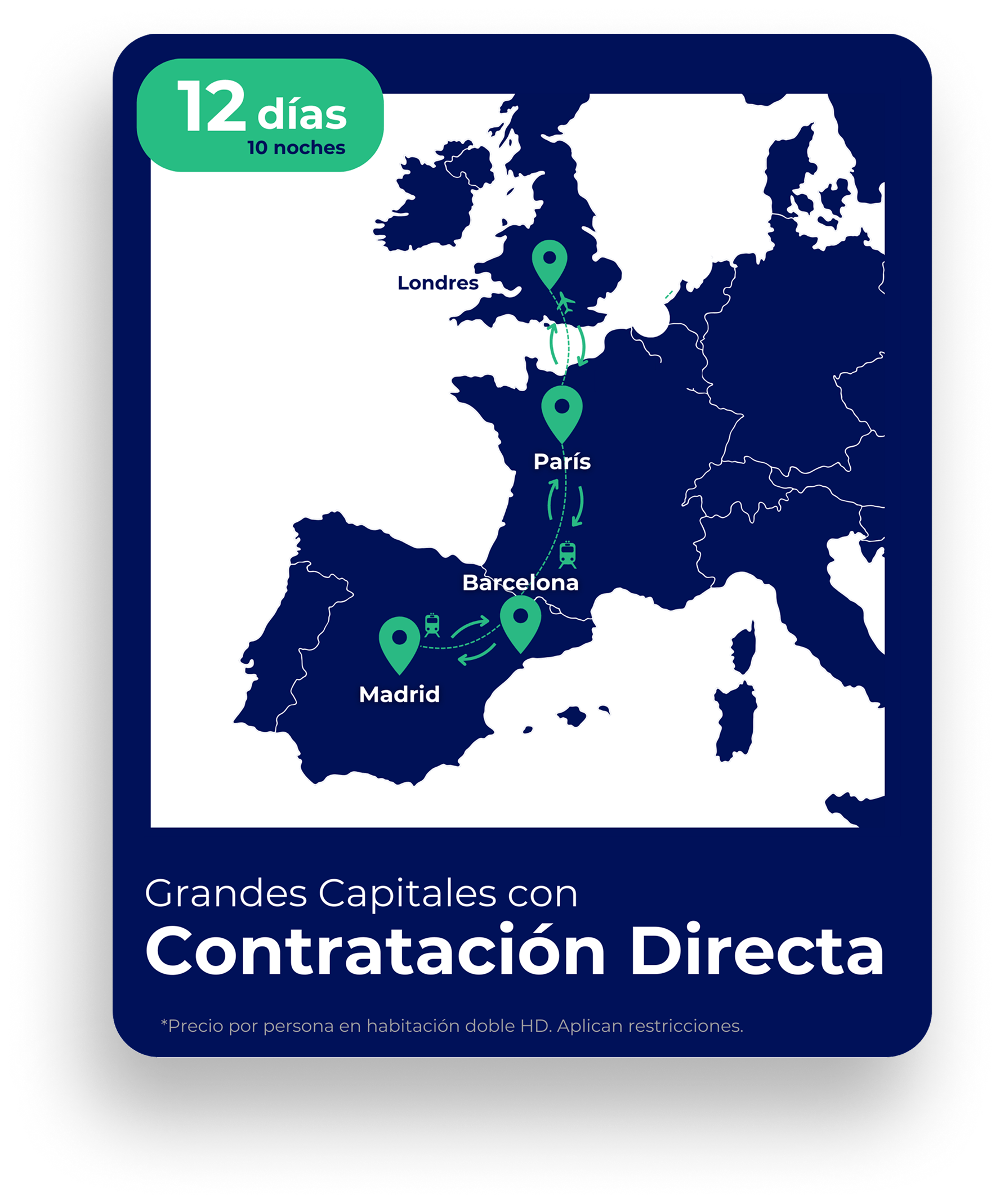 ¿Prefieres algo sencillo y práctico? Con nuestras Rutas de Contratación Directa puedes reservar tu viaje de inmediato, con precio fijo. Tú eliges cuántas noches pasar en cada ciudad y en qué sentido recorrer Europa, sin complicaciones y con toda la comodidad del tren.